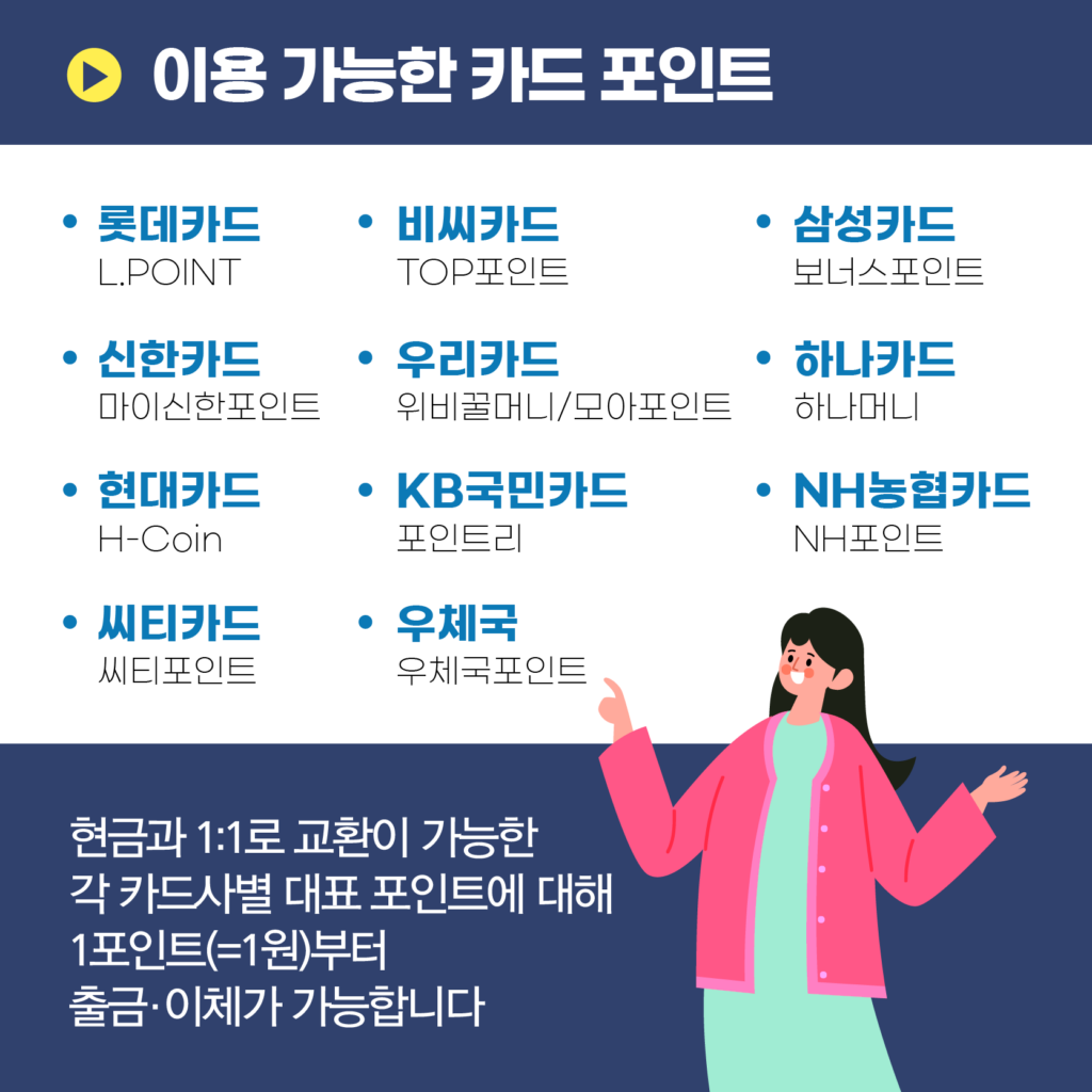 - 장점: 모든 카드사 포인트를 한 번에 조회하고, 계좌로 직접 이체 신청 가능
