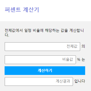 계산하기 버튼을 누르면 퍼센트가 계산됩니다